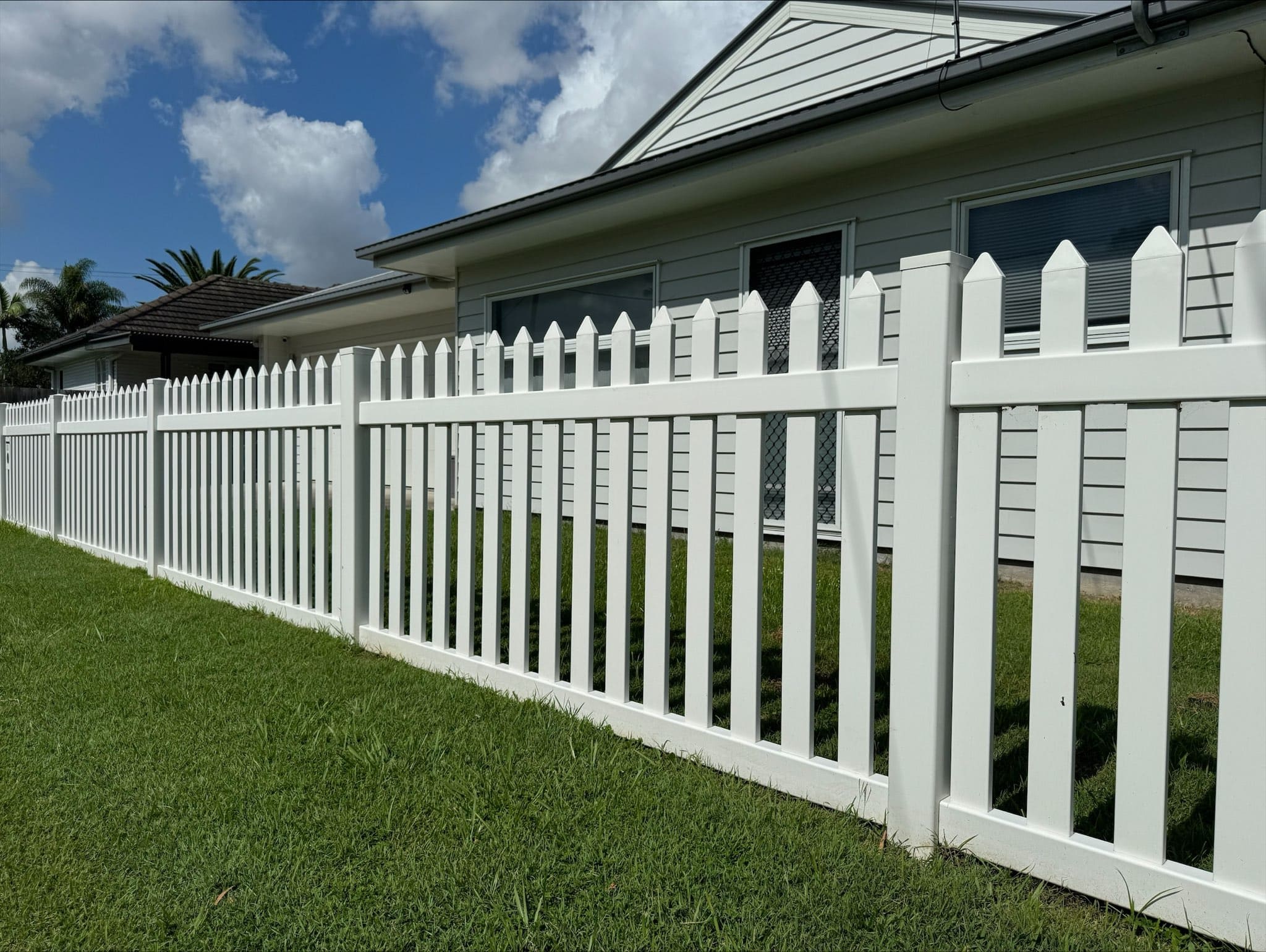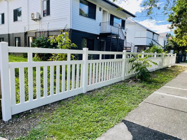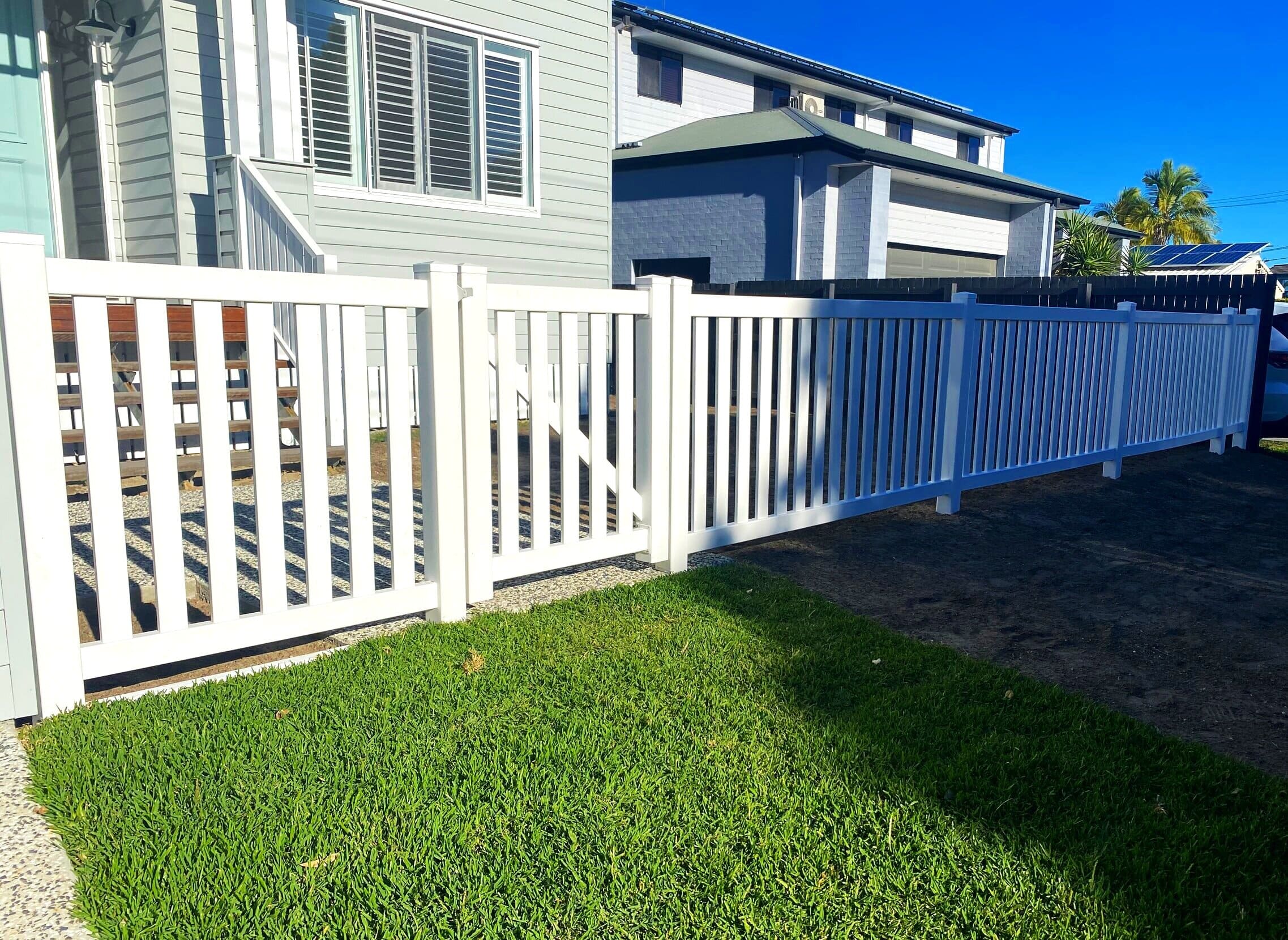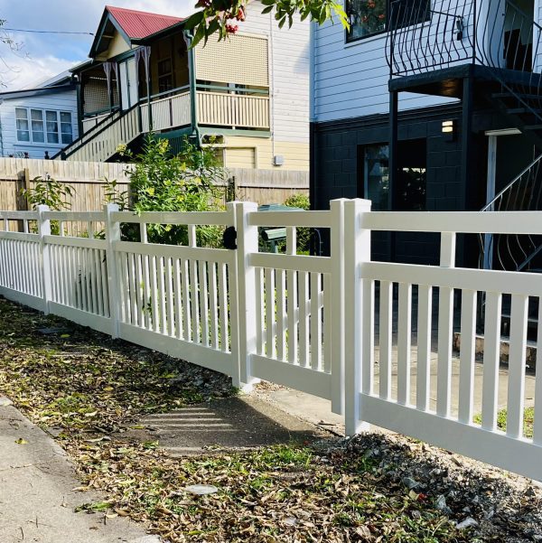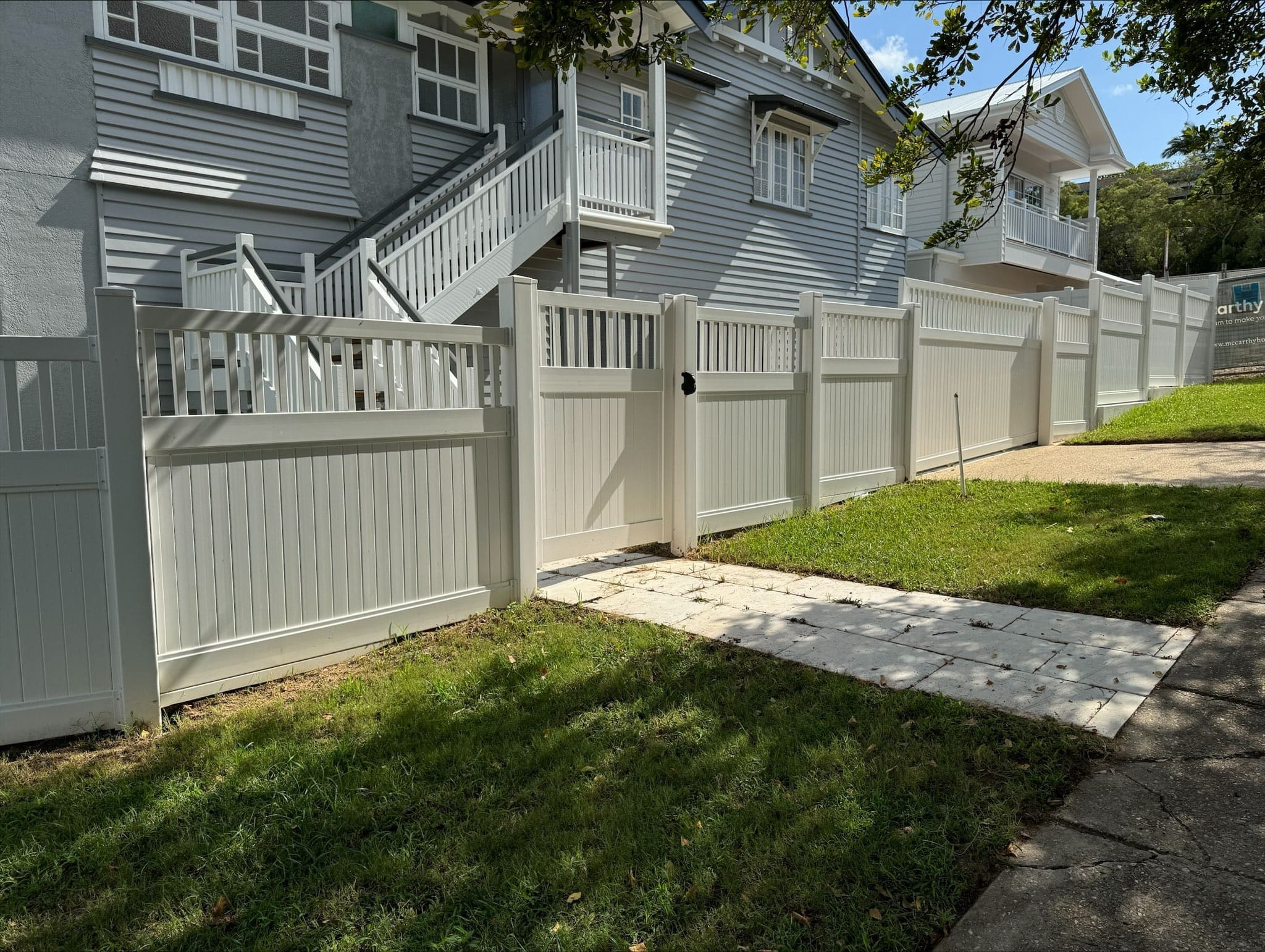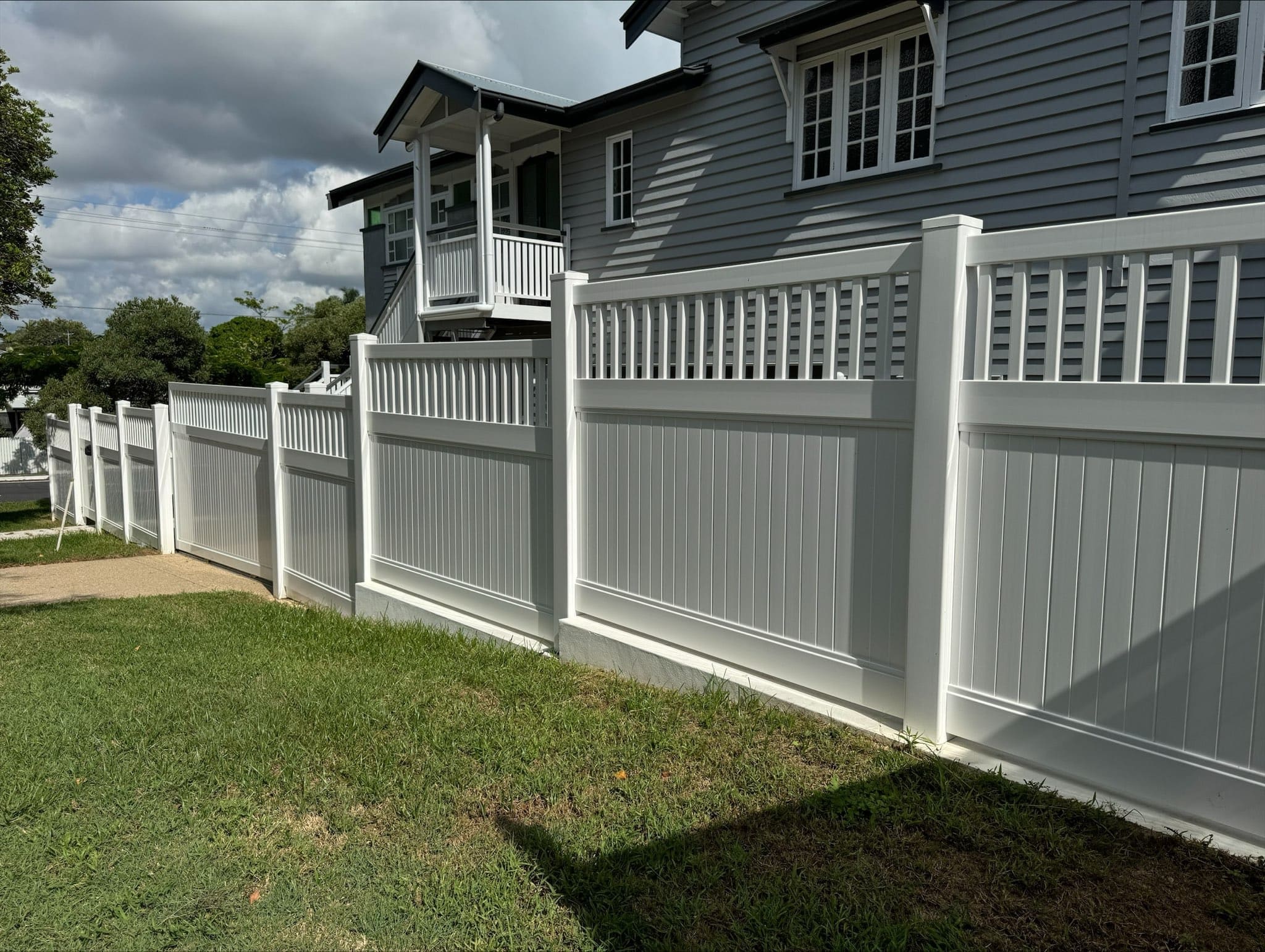 Mary PVC fence gallery installation beside a Queensland heritage-style home by Queensland Fencing Specialists