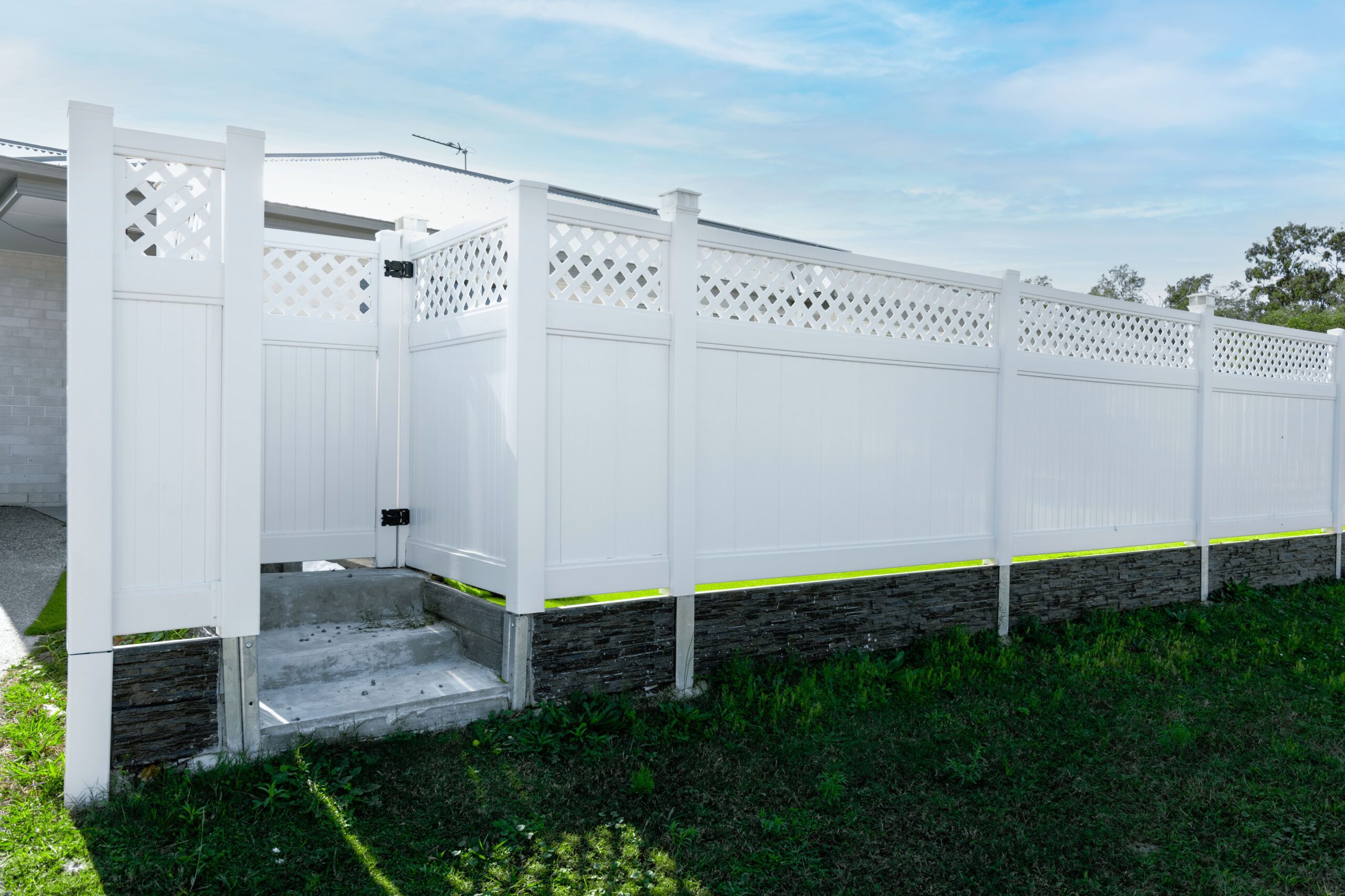 Mary PVC fence gallery sloped block installation with stepped fence layout by Queensland Fencing Specialists