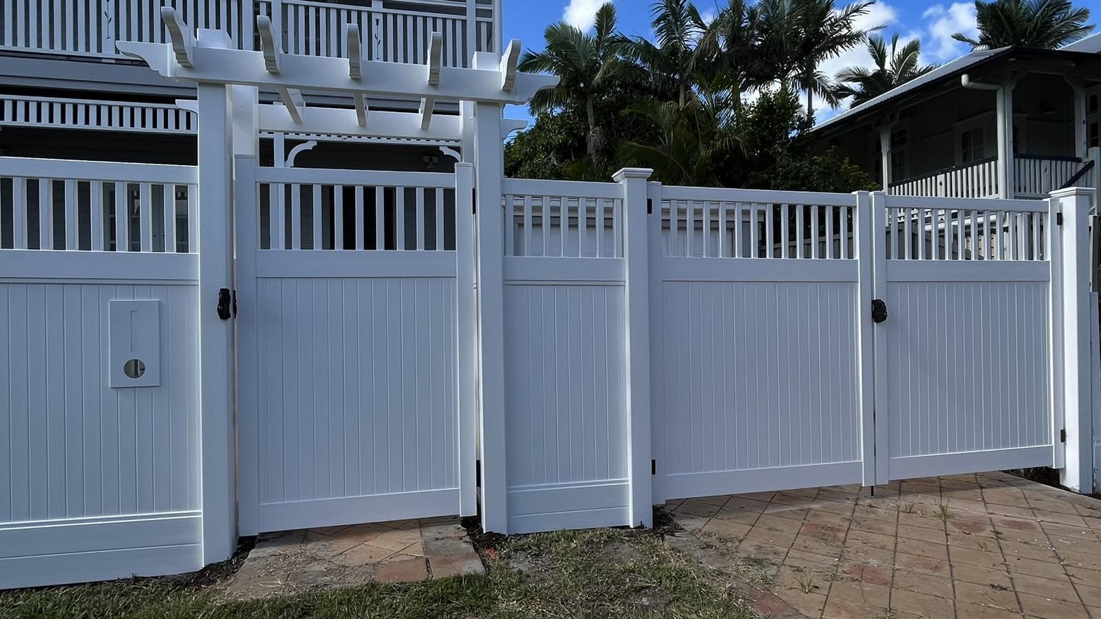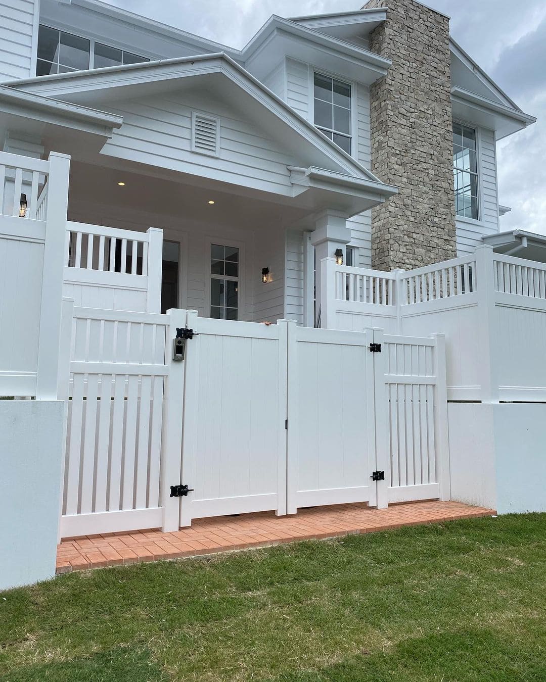 Mary PVC fence gallery double gate entrance for a residential property by Queensland Fencing Specialists