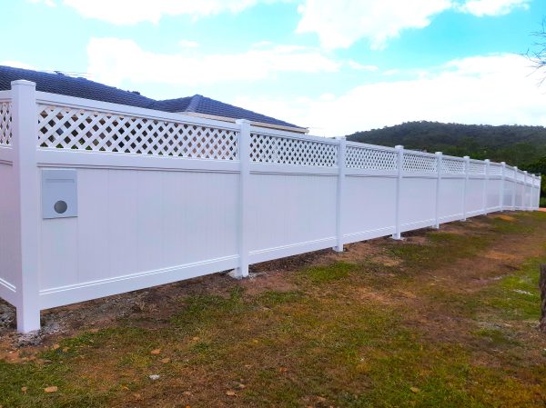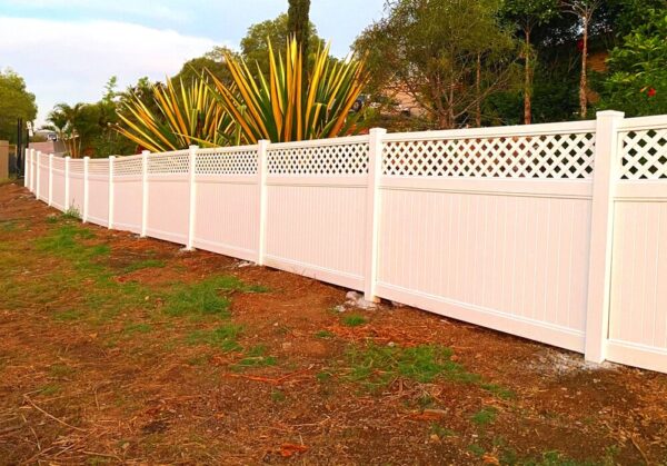 PVC won’t rot, rust, warp, or attract termites. The lattice section is moulded from the same UV-stabilised vinyl as the rest of the panel — no separate pieces to come loose, no timber to split. The whole fence stays white and clean with nothing more than an occasional rinse.